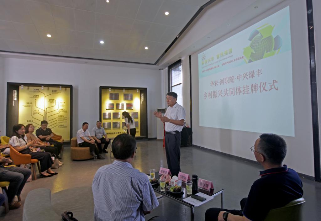 首先,雙方團隊前往燈塔盆地順天鎮的中興綠豐農業科技有限公司進行挂牌,挂牌前校企雙方進行座談,座談會上華南農業大學田興國研究院介紹“1+1+N”高校服務鄉村振興共同體建設内容和建設的意義,我校陳德清校長介紹我校基本情況,同時表示會大力支持共建鄉村振興共同體這個項目,發揮屬地院校的服務作用,中興綠豐曾總介紹公司的發展現狀和未來發展規劃,感謝華農牽手本地高校河職院服務企業,助力鄉村振興。會後,校企雙方舉行了揭牌和種植基地實地走訪。